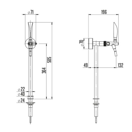Lindr 1-way Tube Tower Font. Perfect for home and commercial bar applications, ideal for connecting to a Lindr portable beer cooler – 20/K, 25/K, 30/K etc